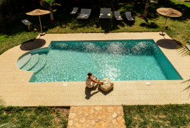 De locatie ligt op een steenworp lopen van een leuk lokaal dorpje. Als je aankomt op het terrein stap je binnen in een oase van groen, bloemen, fluitende vogels en de geur van jasmijn en sinasappelbomen. Het hart van de locatie is de eet- en woonkamer opgetrokken uit veel glas en hout, grenzend aan een heerlijk terras en zwembad. De inrichting is een combinatie van vintage en design. Hier geniet je ook van de fantastische maaltijden, allemaal samengesteld met producten uit de regio en bij het diner wordt een glas lokale wijn geserveerd. Cam en Vera delen met trost al hun culinaire vondsten uit de regio!
