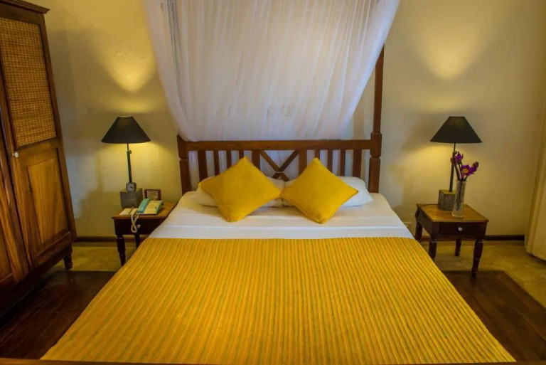 Reef was de eerste locatie waar de familie ooit begonnen is. Daardoor is een aantal kamers ook al wat meer gedateerd dan op de andere locatie, maar er zijn ook een aantal mooie nieuwe kamers en leuke huisjes direct aan het strand. In totaal zijn er 75 kamers. Deze locatie ligt dichterbij het vliegveld (zo’n 1,5 uur rijden) en wat meer in de bewoonde wereld. Het strand is dus ook wat drukker en minder afgelegen. Ook hier is een restaurant met ruime keuze aan heerlijke exotische gerechten. Tussen de gebouwen in ligt een langgerekt zwembad zodat je echt goed baantjes kunt trekken. Het Ayurvedische centrum is hier ook wat ouderwetser, maar wel heel authentiek, met overal “zustertjes” in mooi gesteven jurkjes die je van behandeling naar behandeling begeleiden.