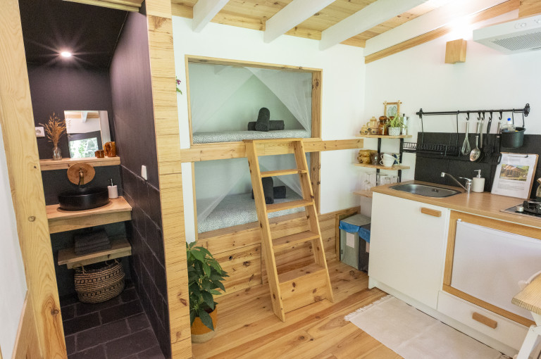 Je kunt met je gezin verblijven in het authentieke stenen Portugese guesthouse, een van de glamping tenten of in een van de vijf handgemaakte tiny houses. Elke accommodatie heeft comfortabele bedden, een eigen keuken met alle benodigdheden en een privéterras. Het terrein bestaat verder uit terrassen op verschillende hoogtes en heeft onder andere een zwembad met verschillende rustplekken, een yoga shala met kleine gym, een barretje waar we samenkomen voor de dinnernights en een speelveld met pingpongtafel, trampoline, speelgoed en spelletjes.