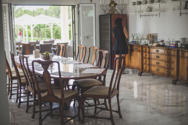 Tijdens je retreat kun je gebruikmaken van de gemeenschappelijke ruimtes, een gezellige lounge en tal van fijne buitenplekken om te ontspannen en op te laden. De villa beschikt over indoor en outdoor yogashala’s, een zwembad, een tennisbaan en rustige hoekjes om te lezen en je lekker even terug te trekken.