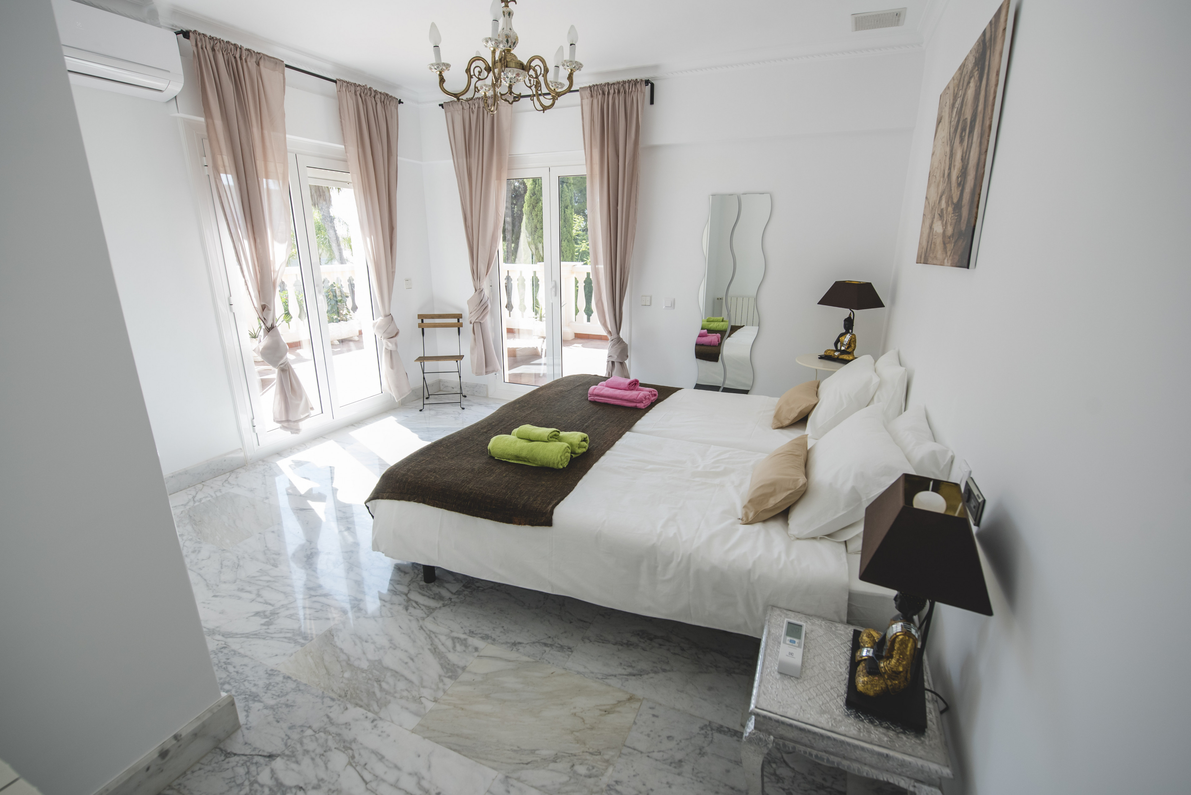 De villa is volledig omheind en ligt in een weelderige tuin vol mediterrane planten en palmen. Je verblijft in een van de acht kamers, allemaal met een eigen badkamer, airconditioning en een kluisje.